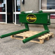 The McHale round bale handler is a heavy duty handler with rotating rollers that have tine reinforcement. It can be used to carry one bale of silage or spike two bales of hay or straw...