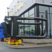 Both the right or left arm can be locked independently, but there is still some mobility, making it possible to stack the bales tightly without damaging the plastic.
