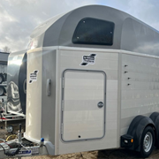 The HBE is a welcome and much requested addition to our HB family of trailers. Available in the 506 double horsebox format (suitable for horses up to 16.2hh) it has a deeper GRP roof moulding and clean line styling.