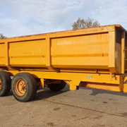 grain trailer with hyd up & over tailgate, sprung axles, on 385 x 22.5 super singles.