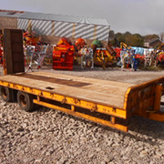 low loader 24' on twin 235/75 x 17.5 tyres, high speed axles with air brakes, hyd flip toe double ramps